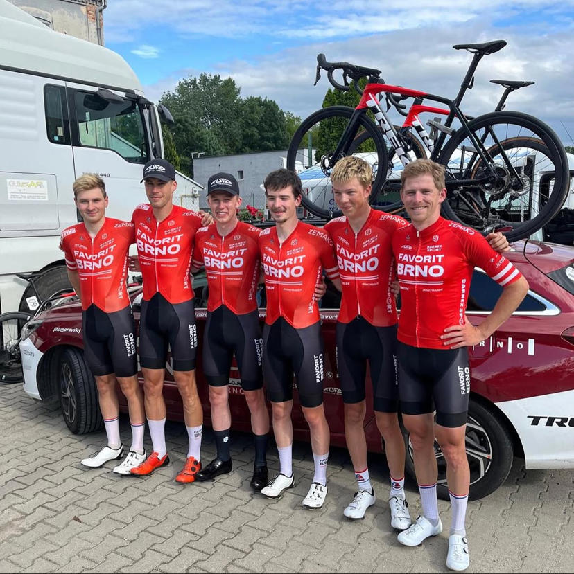 Etapový závod v Trnavě začal pro tým Favorit Brno skvělým výsledkem. Po dramatickém průběhu, kdy závodníci museli sami zlikvidovat téměř minutový náskok pětičlenné skupiny uprchlíků, předvedli výjimečné výkony. Absolutorium si zaslouží všichni, včetně nejmladšího člena týmu, juniora Jáchyma Vlka, který se podílel na stíhací jízdě.