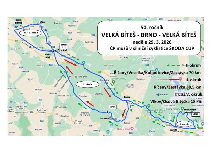 Velká Bíteš-Brno-Velká Bíteš Start závodu 29. března 2026 ve 12.oo hod. z Masarykova náměstí ve Velké BítešiPropozice ke stažení zdeItinerář ke stažení zdeMapa závodu ke stažení zde