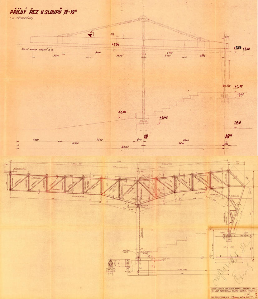 Pod unikátní střešní konstrukcí dráhy a hlediště je podepsán brněnský profesor Ferdinand Lederer, specialista v oblasti ocelových konstrukcí a jeden z autorů zastřešení památkově chráněných pavilonů na brněnském výstavišti C a Z, jehož původní návrh výrazně přepracoval Ing. Jiří Lefner. Ledererův návrh byl tvořen pro tohoto konstruktéra typickou příhradovou konstrukcí, Lefner však využil pouze základní dispoziční řešení se sloupy ve dvou řadách vně dráhy a použil modernější závěsnou konstrukci. Architektonickou podobu areálu má na svědomí Mojmír Korvas. Není moc známo, ale dle dobového tisku byl brněnský velodrom první betonovou zastřešenou dráhou na světě.